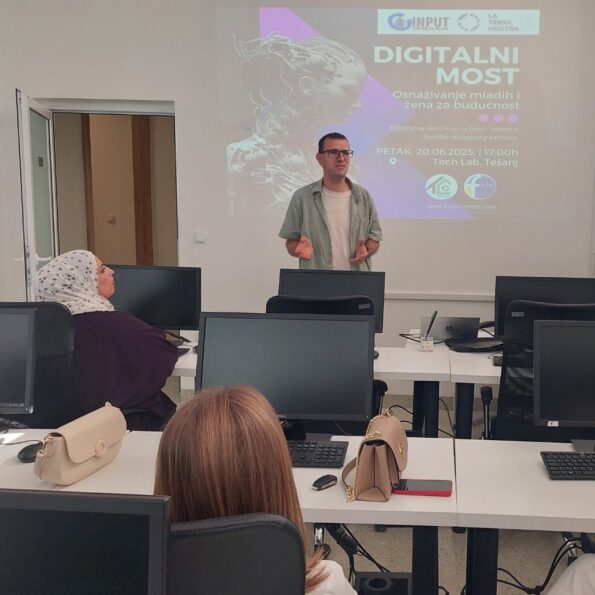 U okviru projekta “Digitalni most: Osnaživanje mladih i žena za budućnost”, Centar za mlade INPUT održao je joÅ” jednu uspjeÅ”nu edukativnu radionicu – ovoga puta u prostorijama Tech Lab TeÅ”anj.