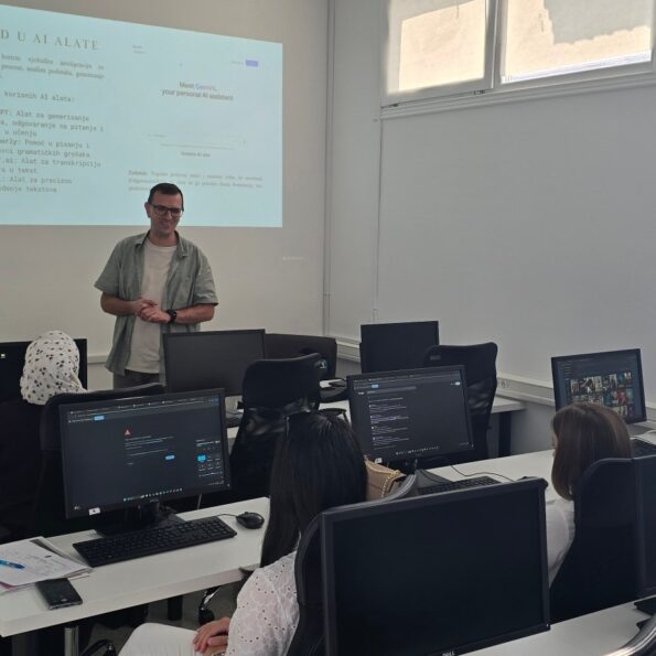 Radionica je bila posvećena jačanju digitalnih vjeÅ”tina i kompetencija, s posebnim naglaskom na koriÅ”tenje alata ChatGPT i Canva. Učesnice su sa velikim entuzijazmom učestvovale u interaktivnom dijelu radionice, kreirale vlastite sadržaje i kroz praktične zadatke usvajale korisna znanja za digitalno doba.