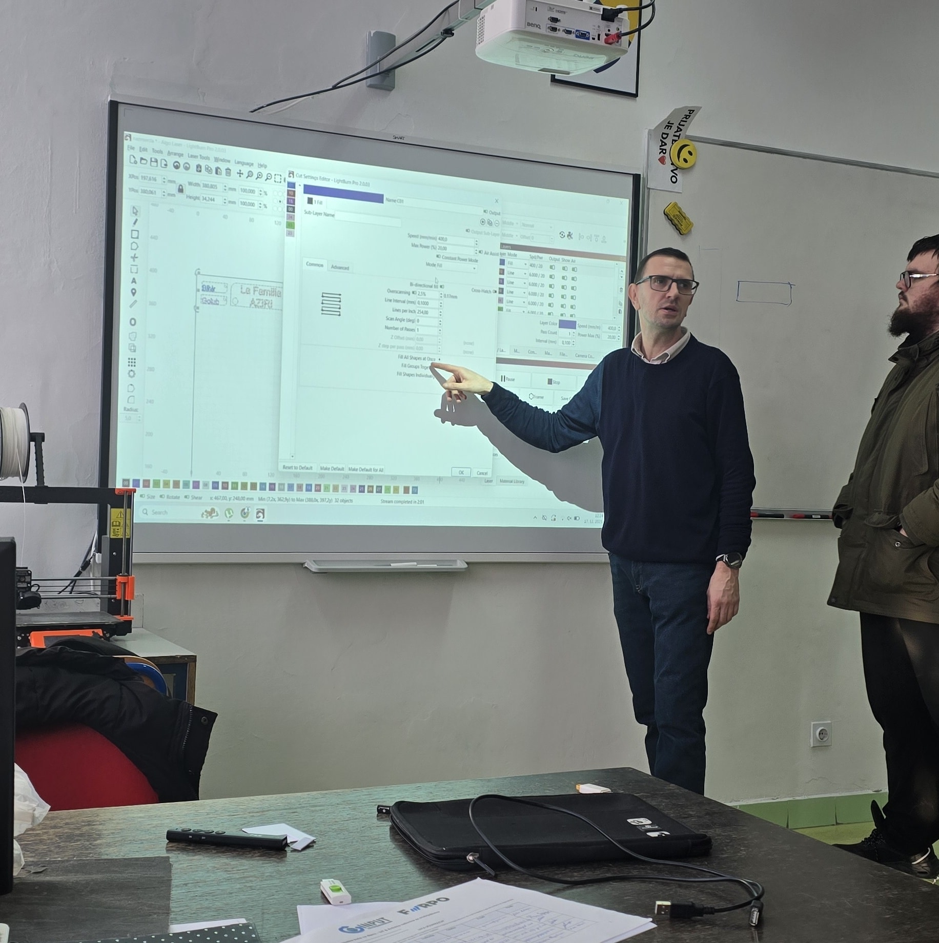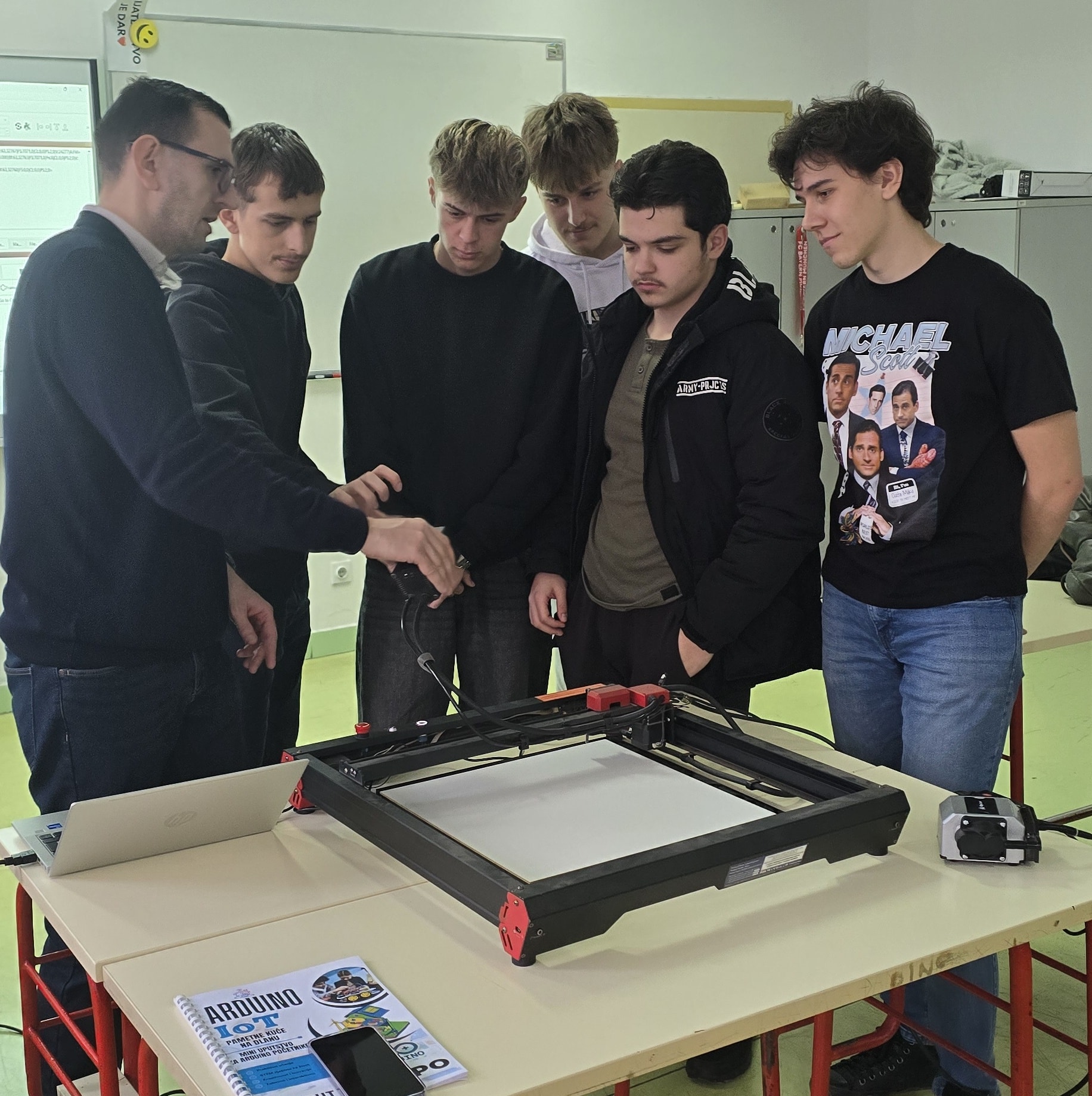 Učionica je bila ispunjena fokusom i timskim radom – dok su jedni sklapali i testirali elektronske komponente, drugi su programirali, a treći pratili rad CNC mašine i povezivali mehaniku s elektronikom. Radionica je bila primjer učenja bez gotovih rješenja, uz samostalno razmišljanje i eksperimentisanje.